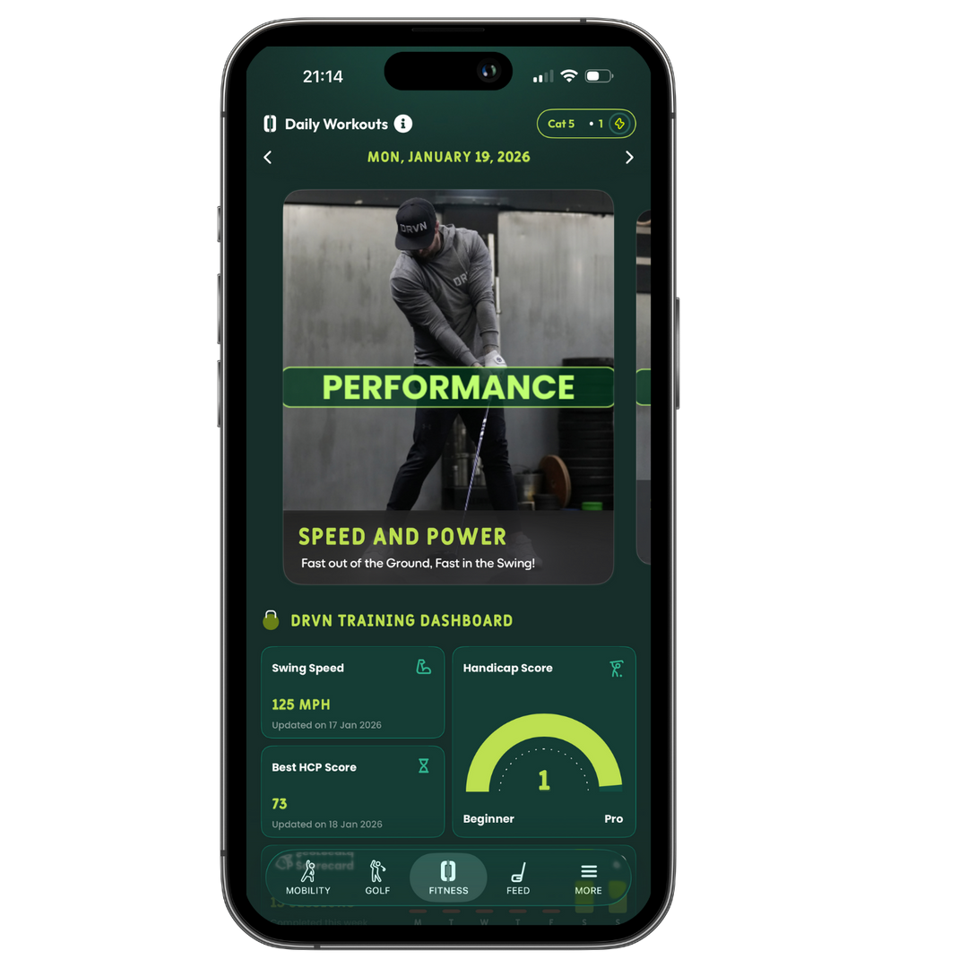 Train for Golf and for Life with the best Workouts in Golf in the DRVN App with programs designed for the Golf Season. This Plan builds confidence, consistency and progress into how you work on your Health and Fitness and how you work on your Golf Swing! We do the Work, you just follow the Program!