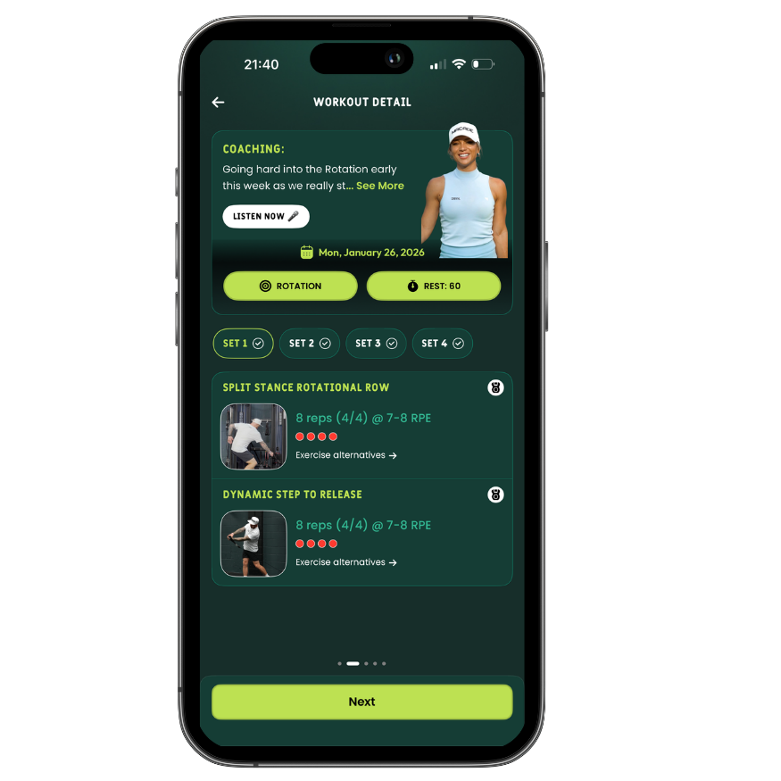 Our #1 Golf Fitness App has the best deigital experience possible for you and your game! Everything is laid out for you from sets and reps to specific video demos with zero navigation. This is the best way to learn, train and succeed.