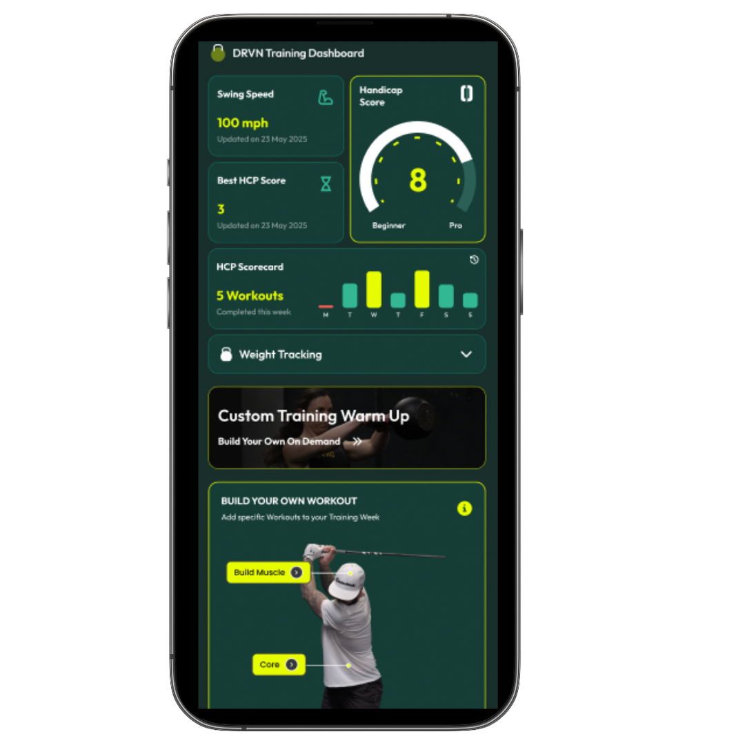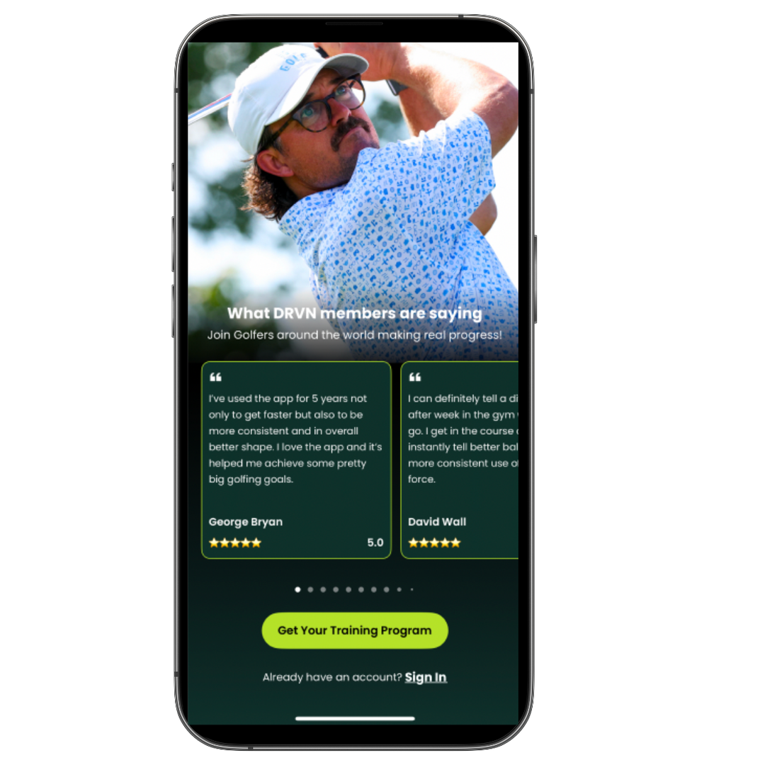 Tired of slicing drives and nursing swing-killing injuries? DRVN's all-in-one app delivers PGA-level workouts, flexibility drills, and swing boosters that add yards to your game – at all levels. Over 75K golfers are levelling up.